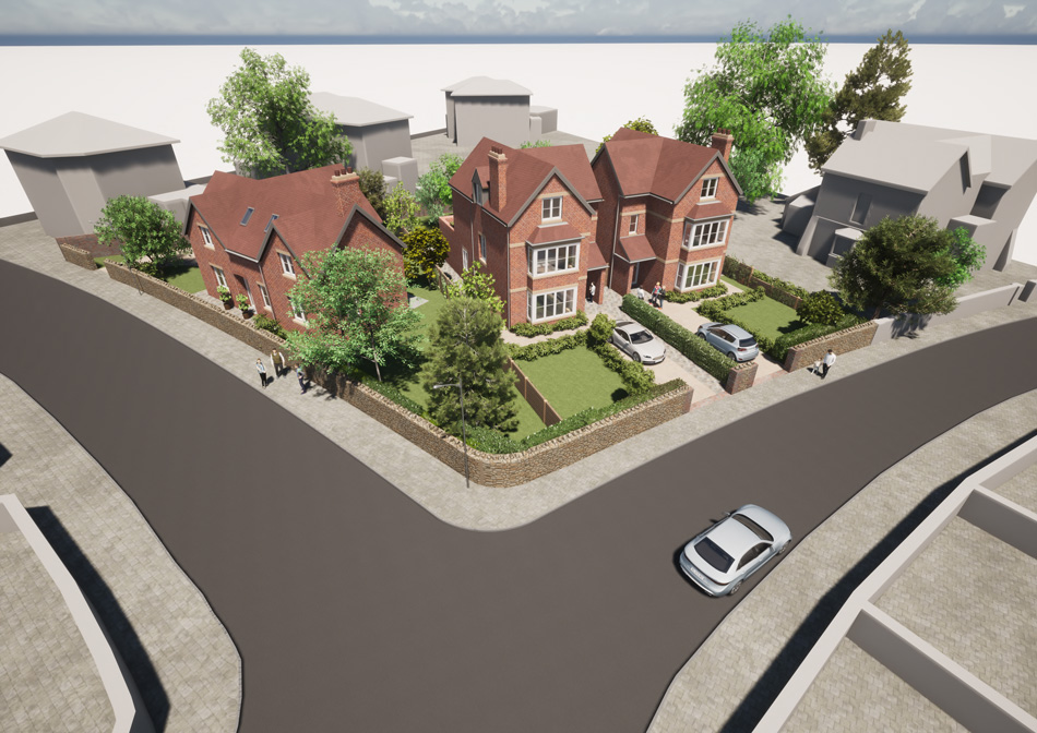 A substantial house with land acquired within the Malvern Link Conservation Area. The team worked hard to overcome the stringent standards set down by the Malvern Hills District Council in this sensitive area. Planning obtained for three high quality detached family homes with the Victorian house retained.